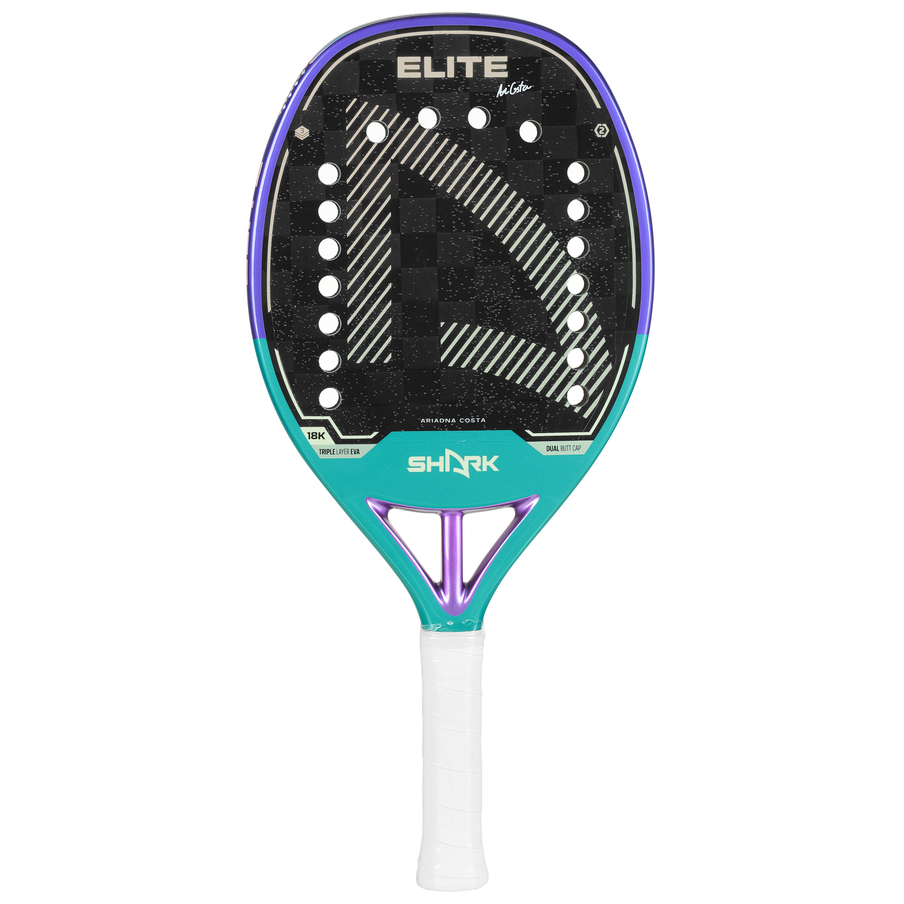 A Raquete de Beach Tennis Shark Elite 18k, foi desenvolvida em Carbono 3k preenchida com EVA Soft Pro em três camadas ,deixando-a confortável, potente e precisa.